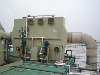 ??臥式洗滌塔最適合規劃于狹長的空間及處理大風量使用,對于氣態、液態、固態的污染源皆可處理。壓降低、保養簡單、維護容易。可以單元處理有毒氣體(如HCL、HNO3、HCN、HF、H2SO4、CL2等),也可延伸為多段處理臭氣及混合性氣體,其處理效率均達99%以上,另對粉塵微粒也有不錯的處理效果。